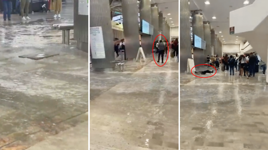 Sin embargo, en un video que ha sido difundido en redes sociales se puede ver cómo las personas tratan de evitar mojarse y cómo un hombre cae al suelo tras intentar evitar el agua.