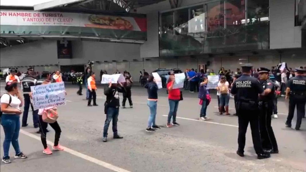 Decenas de padres de niños con cáncer bloquearon los accesos 3 y 4 de la Terminal 1 del Aeropuerto Internacional de la Ciudad de México con una cadena humana para exigir al gobierno el tratamiento que los pequeños pacientes necesitan.