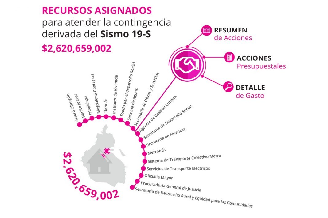 Añadió que conforme al Artículo 14 del Decreto de Presupuesto de Egresos de la Federación 2018 para la Ciudad de México, se consideran 8 mil 772 millones de pesos para acciones de Reconstrucción y que de este recurso, 5 mil millones pesos se destinan para el Fondo para la Reconstrucción, Recuperación y Transformación de la Ciudad de México.