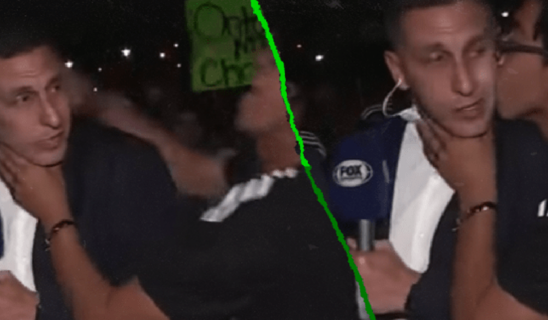 Los estragos de la fiesta tras el triunfo de México sobre Canadá en la Copa Oro llegaron hasta las pantallas de Fox Sports cuando un aficionado invadió el enlace para besar a Christian Chaco Giménez en plena transmisión televisiva.