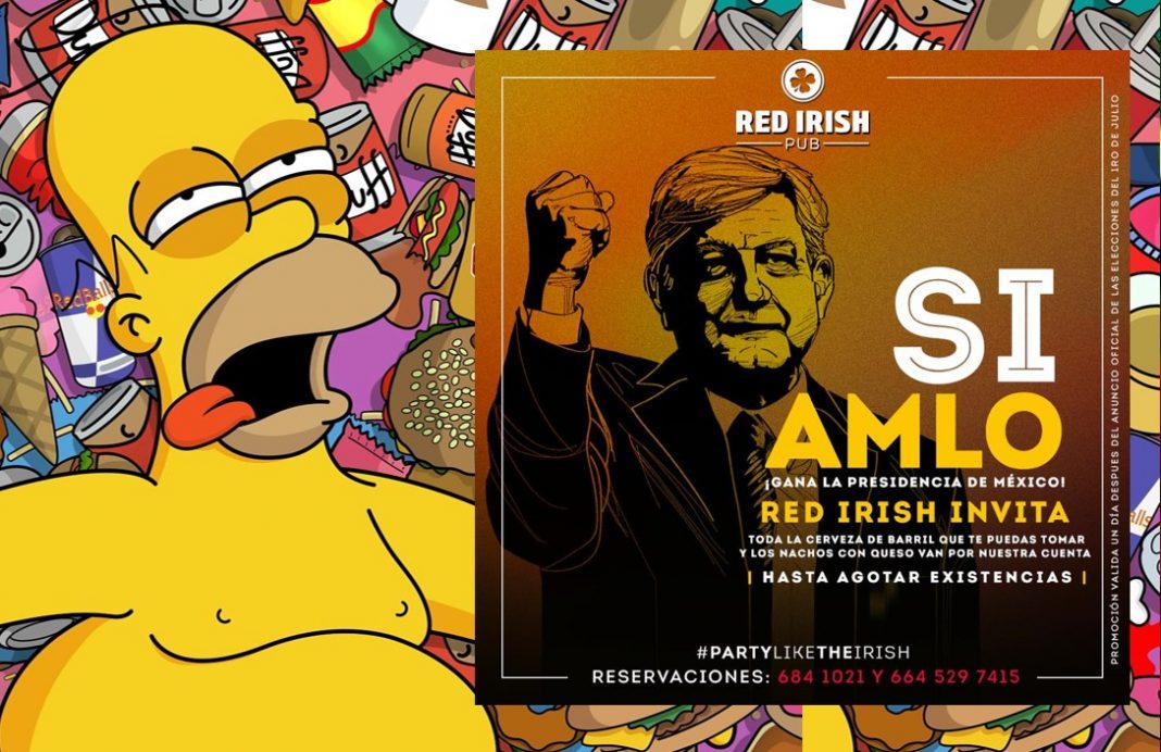 «Que todo México se entere si AMLO gana la presidencia de México, Toda la cerveza de baril gratis que puedas tomar y nachos con queso por cuenta de la casa»…es el mensaje del #RedIrishPub de Tijuana, en donde dice que se pondrán guapos siempre y cuando gane el candidato de Morena a la presidencia de México.