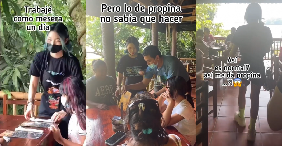Según el video, ella ya había trabajado anteriormente como mesera en Corea y por ese motivo se sintió ‘experta’. «¿Así es normal que den propina?… porque me siento raro», dice la joven quien al ver la cantidad dice: «Pero eso es mucho», incluso dice que ‘peleó’ con los comensales por el tema».