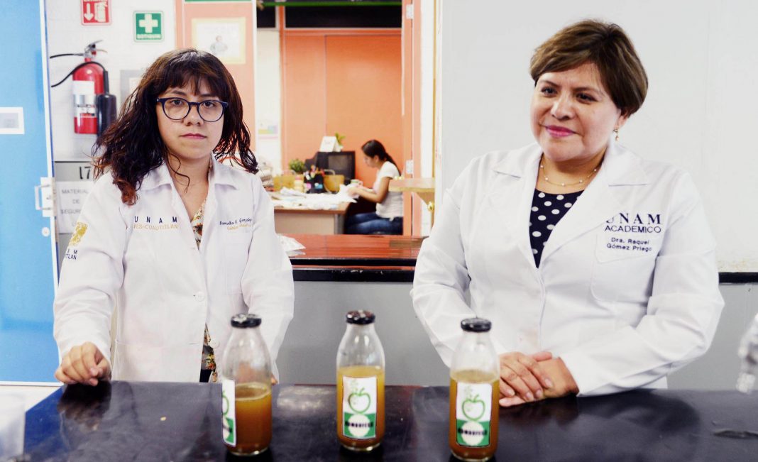 La académica e investigadora Raquel Gómez Pliego y sus alumnos de la FES Cuautitlán, desarrollaron un producto, que es una mezcla fermentada de de hierbas, raíces y plantas como la árnica, cúrcuma, cardamomo, anís, jamaica y frutos rojos, entre otros.