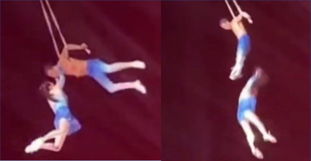 En medio de una función, una joven trapecista se encontraba con su pareja, a unos nueve metros de altura aproximadamente, apenas llevaban un par de segundos en el aire cuando de repente algo salió mal, ´pues Sun Moumou, de 37 años se soltó de su pareja cayendo al vacío, esto en Suzhou, provincia de Jiangsu, en China.