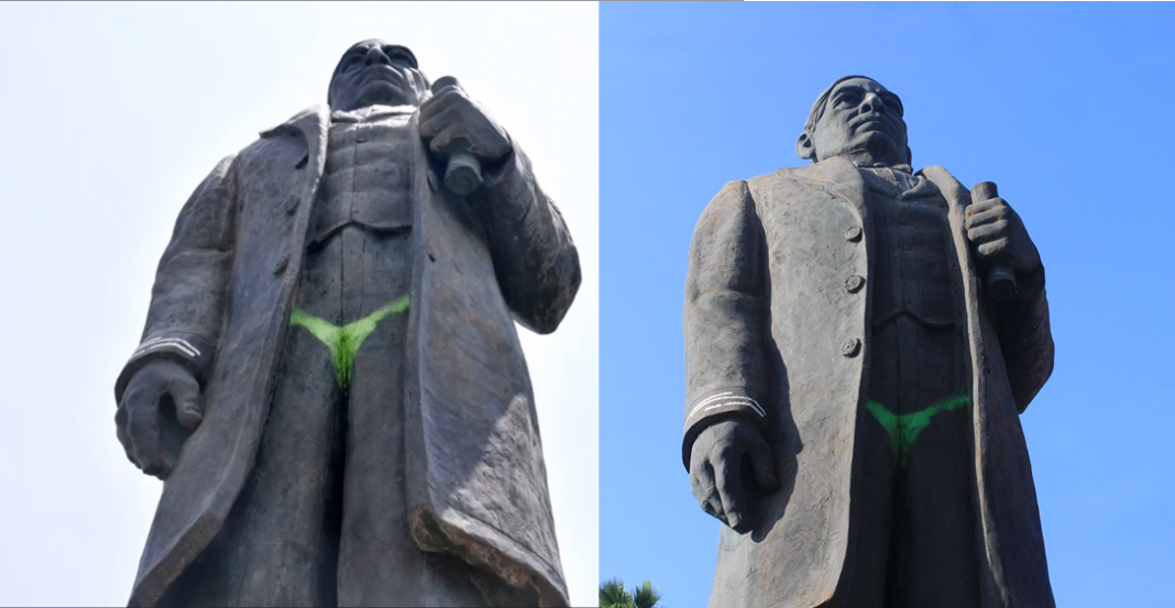 Al amanecer la gente de Cuernavaca no podía creer lo que veían sus ojos, pues a alguien sin quehacer se le ocurrió pintar ropa interior a un monumento de Benito Juárez en el boulevard que lleva su nombre en el centro de esa ciudad.