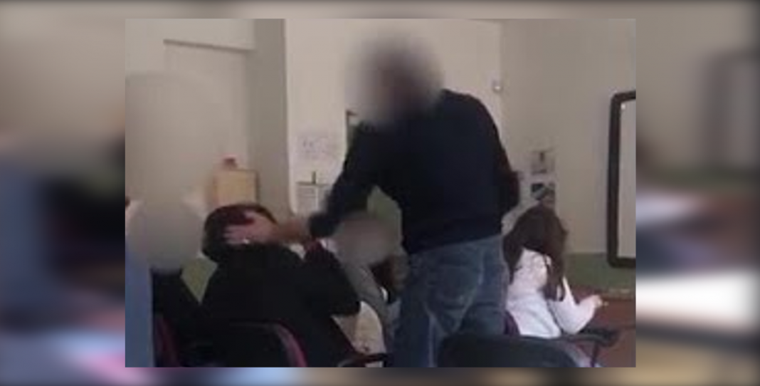 Tremendo bofetón se llevó un alumno por parte de su profesor, luego de que le pidiera en reiteradas ocasiones que usara el cubrebocas, pero este se negó tajantemente.