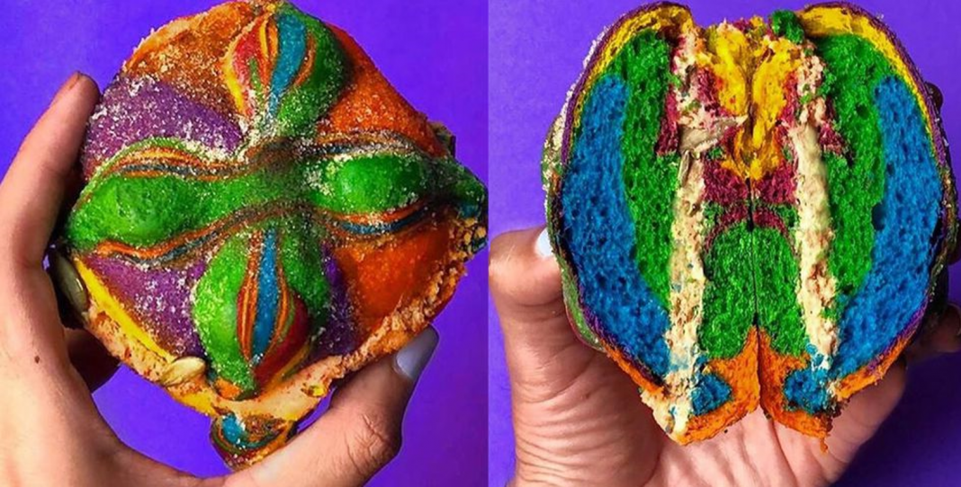 Rainbow Bagels es el nombre de la panadería que sacó al mercado, el primer pan con los colores alusivos a la bandera de la comunidad gay, pan que solo venden ellos (por el momento) en la CDMX en su local en la calle Monterrey 225 de la colonia Roma y/o por pedidos en sus redes sociales.