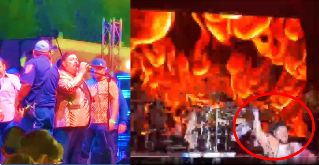 Un video que circula en redes sociales captó el momento en el que el cantante de música norteña al caer en pleno escenario del Border Fest 2022 celebrado en Hidalgo, Texas. A su lado estaban sus compañeros, quienes pudieron ayudarlo a levantarse.