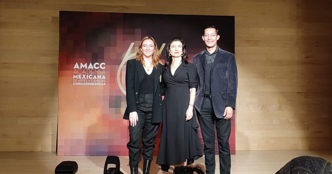 Leticia Huijara, presidenta de la Academia de Artes Cinematográfica (AMACC), acompañada de la actriz Regina Blandón y el ganador del Ariel a mejor actor en 2020, Luis Alberti, dio a conocer la lista de nominados para la 64 entrega de los Premios Ariel 2022.