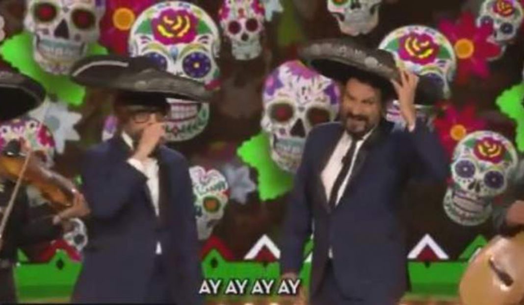 Con la melodía de «Cielito Lindo» y acompañados de cuatro mariachis, los conductores Óscar Andreu y Óscar Dalmau, cantaron durante la última emisión de TV3 la sátira sobre el suceso histórico de hace 500 años. Los conductores dejaron en claro que únicamente se trataba de humor.