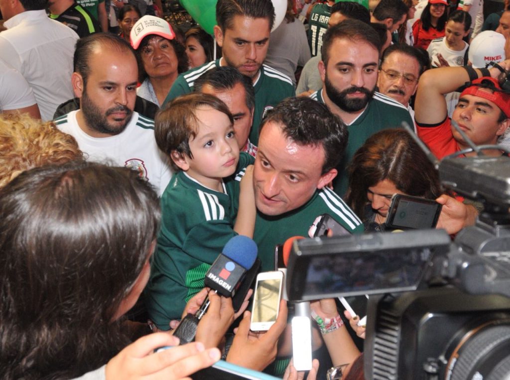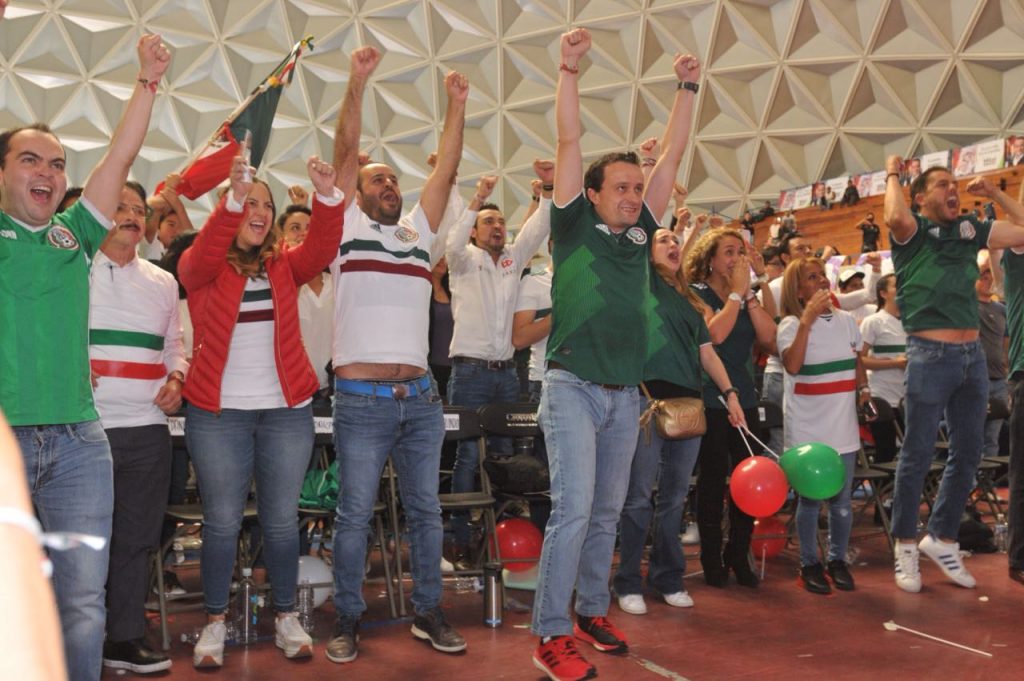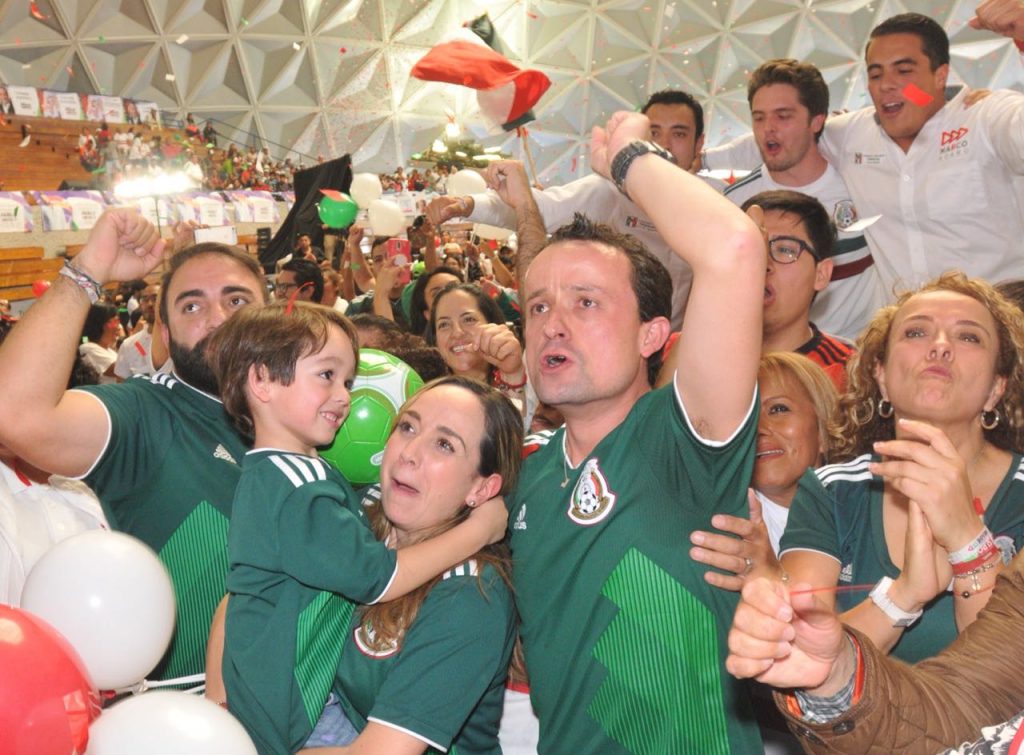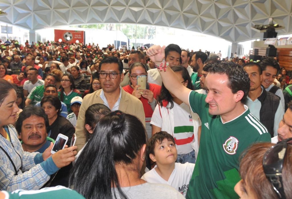 El candidato del PRI a Jefe de Gobierno de la Ciudad de México, Mikel Arriola, , celebró el triunfo de la Selección Mexicana junto con más de tres mil personas en el Deportivo del Plan Sexenal.