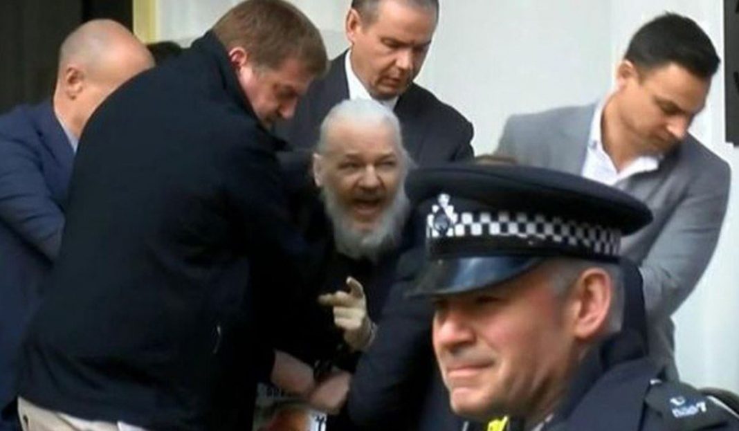 Momento en que Julian Assange es sacado forzosamente de la embajada de Ecuador en Londres