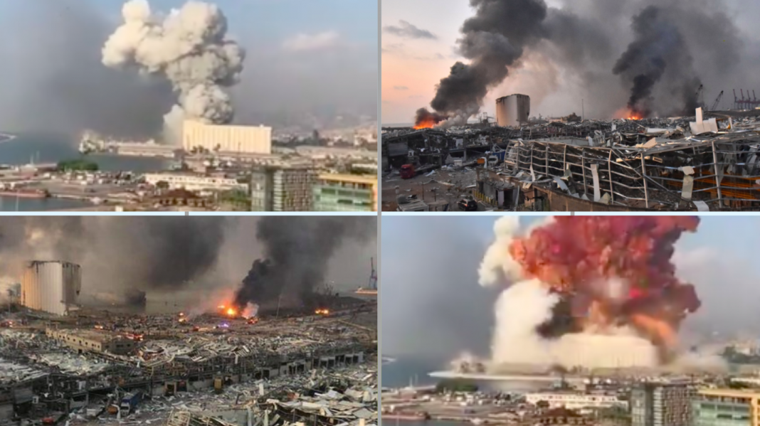 Imágenes de la explosión que compartieron residentes en las redes sociales mostraron una columna de humo saliendo del distrito portuario seguida de una enorme explosión. Personas que filmaron el incidente desde un edificio alto a dos kilómetros de distancia del puerto fueron arrojados hacia atrás por el impacto de la explosión.