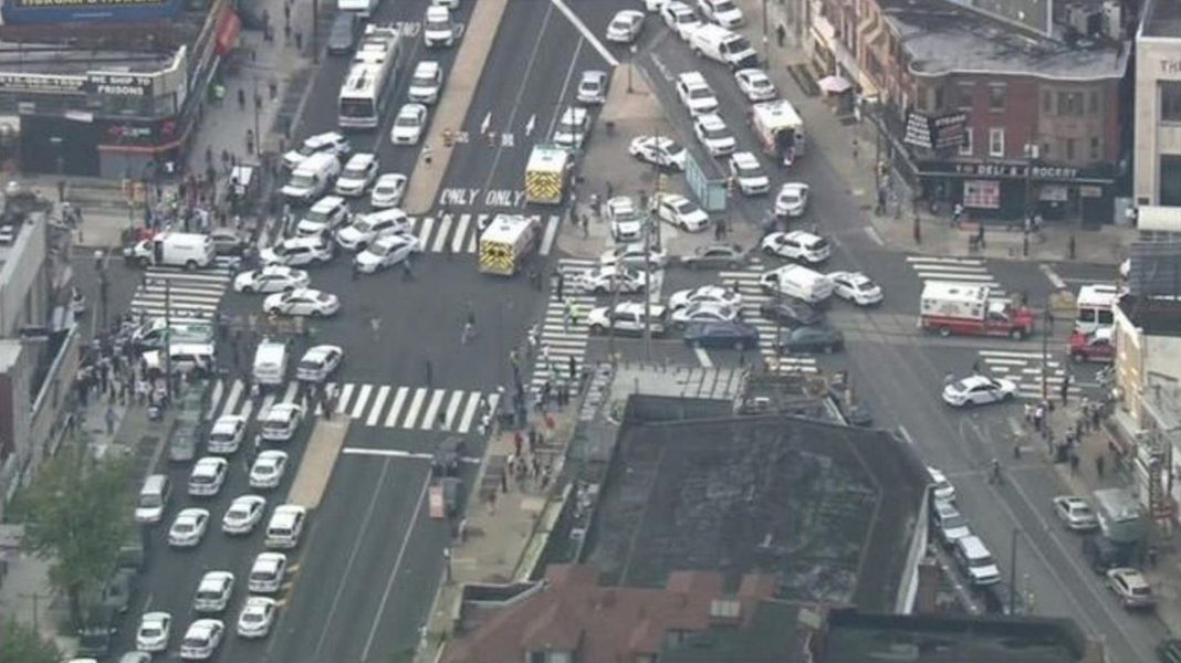 Patrullas de la Policía de Filadelfia siguen acudiendo al lugar.