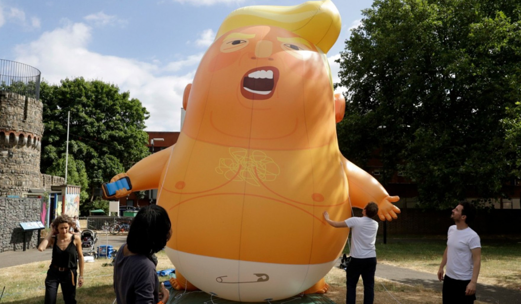 Pese a no verlo, miles de personas se han congregado bajo el grito de «Donald Trump no es bienvenido» y con múltiples carteles en contra de las políticas «segregadoras» de Trump, su «fanatismo» y su «estrechez de miras», acusándolo de racista y de homofóbico.