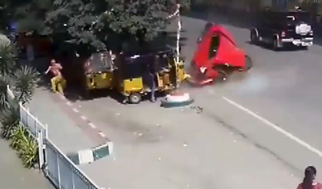 Este 23 de noviembre, un vehículo fuera de control, que iba circulando por un puente, cayó varios metros en una calle transitada en la ciudad india de Hyderabad, matando a una transeúnte e hiriendo a 6 personas más.
