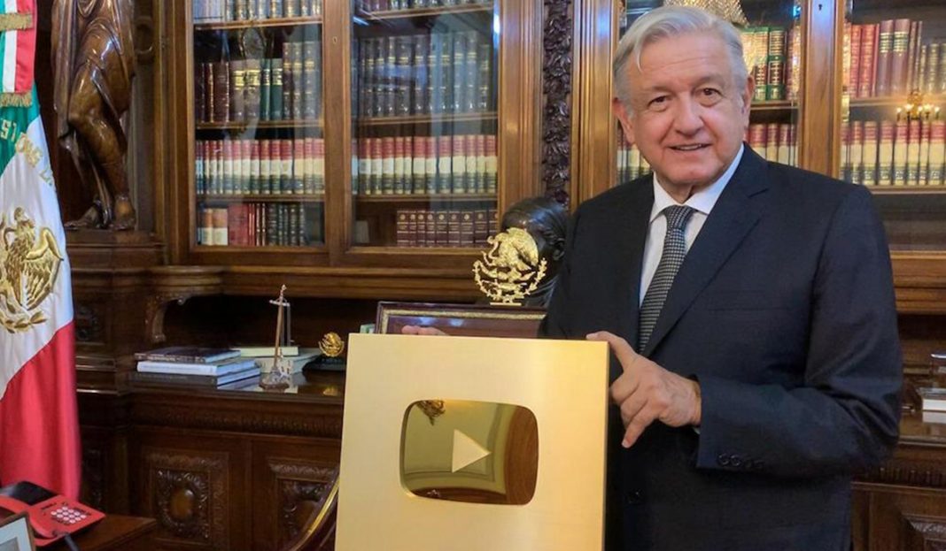 El presidente Andrés Manuel López Obrador presumió el Botón de Oro que le otorgó YouTube por llegar a un millón de suscriptores en su canal y dedicó el reconocimiento a las “benditas redes sociales” porque ofrecen la posibilidad de la libre manifestación y expresión.