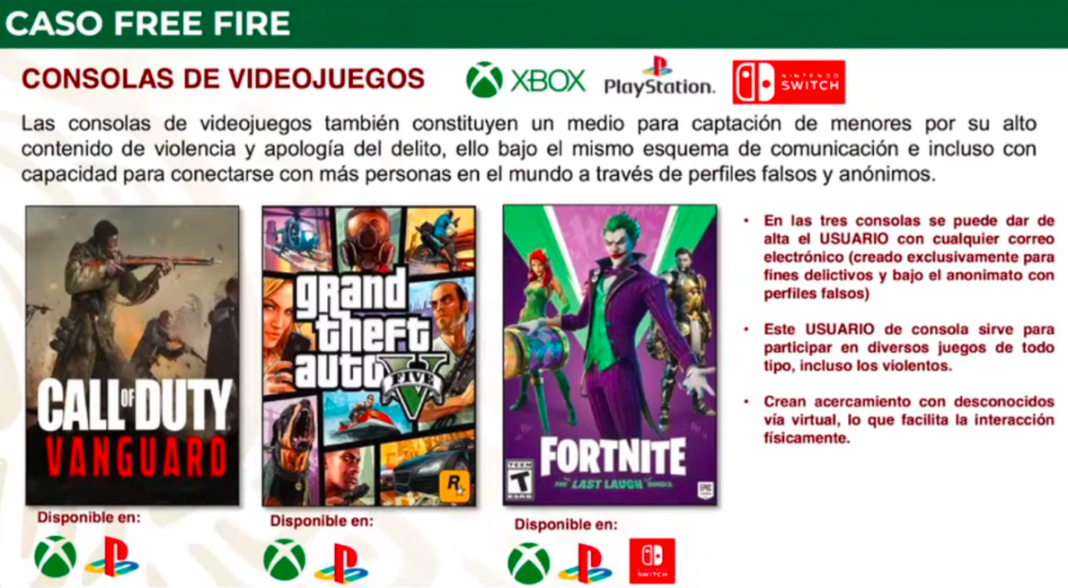 «Este caso fue de un videojuego de celular, pero también esto se hace a través de las consolas de PlayStation, Xbox o Nintendo Switch», dijo.