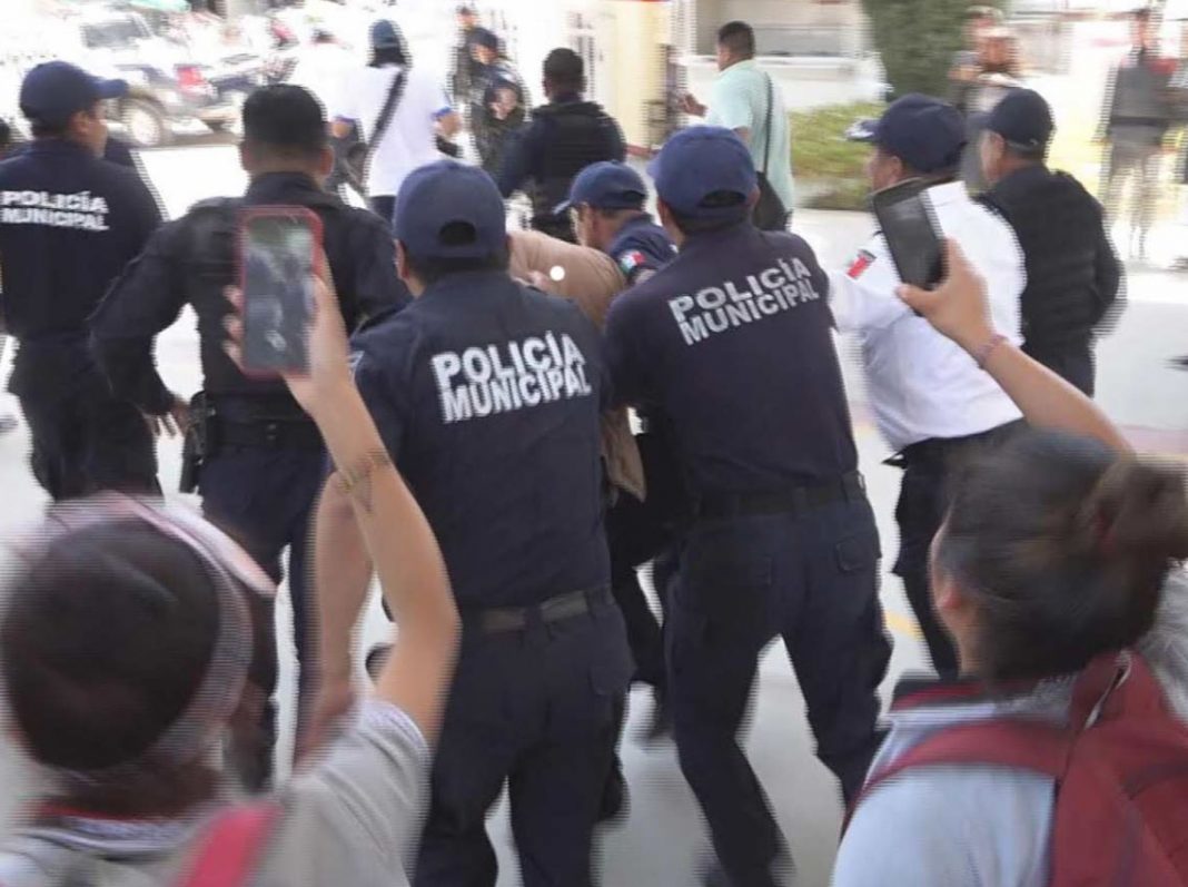 Los oficiales implementaran un cerco para proteger al maestro. La indignación surge a partir del las acusaciones de estudiantes cuyos padres de familia acudieron al plantel a exigir la expulsión del acusado.