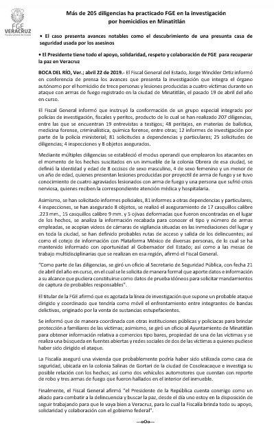 (1)https://t.co/fMvIgJXjda pic.twitter.com/5FJbl4hj88— FGE Veracruz (@FGE_Veracruz) 23 de abril de 2019