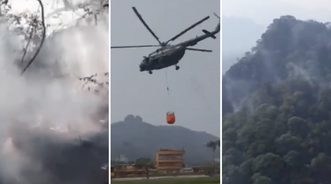 En el combate al fuego se usó un helicóptero MI-17 de la Guardia Nacional habilitado con un helibade que realizó 27 descargas con un total de 49 mil 500 litros de agua en los puntos de calor ubicados principalmente en la zona de riscos, donde el acceso a pie era complicado.