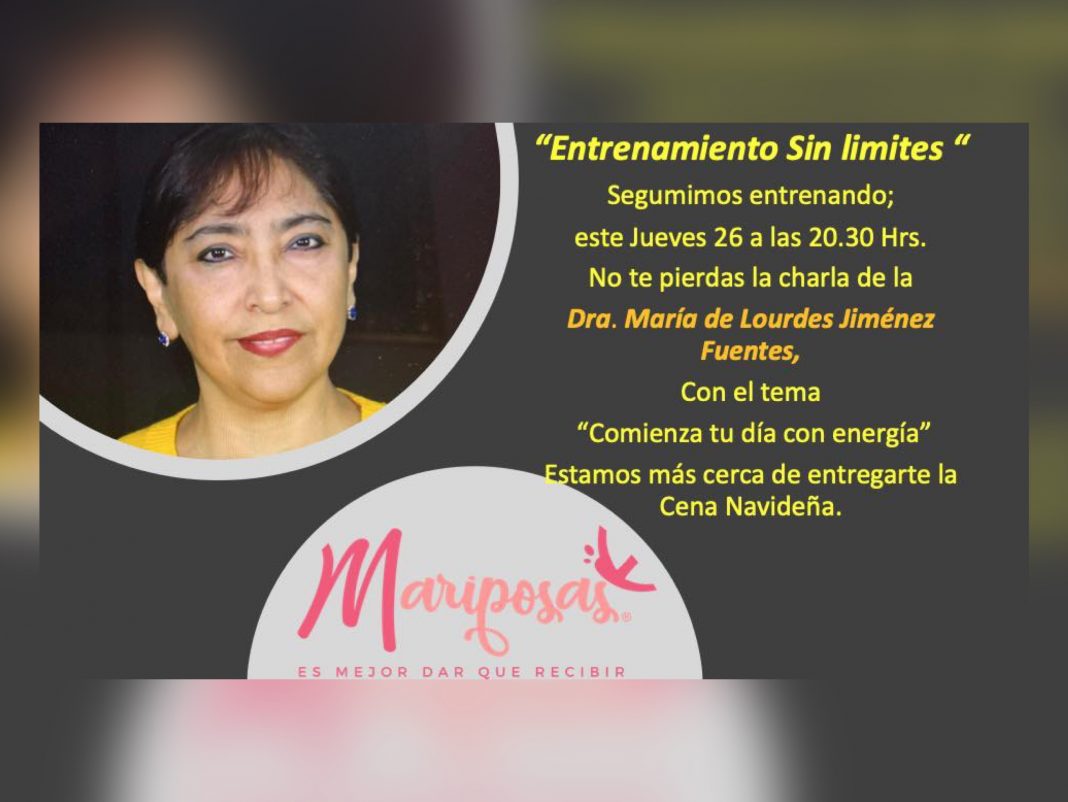 La noche del jueves, Mariposas A.C., dedicada a atender a mujeres que sufren cualquier tipo de violencia, ofreció una nutrida charla con la doctora María de Lourdes Jiménez Fuentes respecto a comenzar el día con energía.