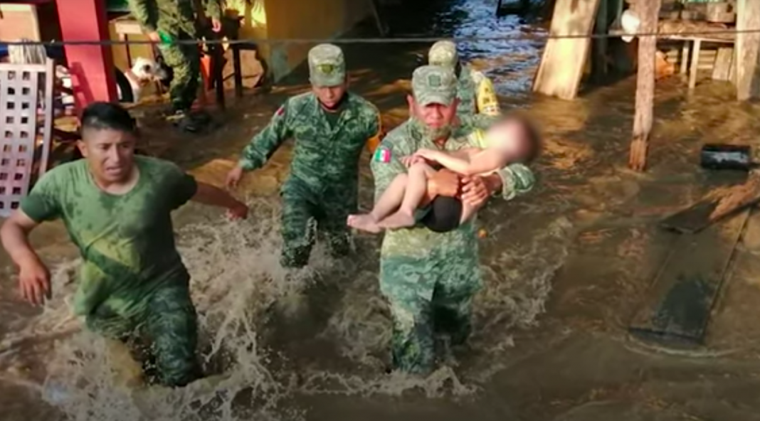 La Secretaría de la Defensa Nacional (Sedena) y las Fuerzas Armadas han trabajado en el Plan-DN-III por las inundaciones, en Tabasco. Así, un grupo de soldados realizaron el notable rescate de un menor, quien se estaba ahogando al interior de su domicilio.