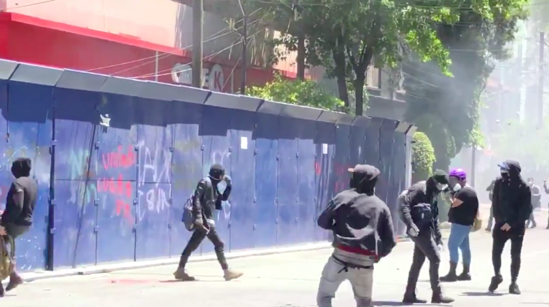 Vestidos de negro y con el rostro cubierto, decenas de personas marcharon por una de las principales avenidas de la capital mexicana, rompiendo vidrios y pintando paredes de negocios aledaños. Tras agredir la embajada estadounidense, se dirigieron a la representación de Jalisco en la capital, en donde se enfrentaron a la policía.