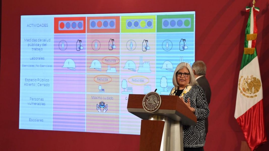 Graciela Márquez Colín, secretaria de Economía, anunció que el regreso a la «nueva normalidad» será escalonado y basado en un semáforo.