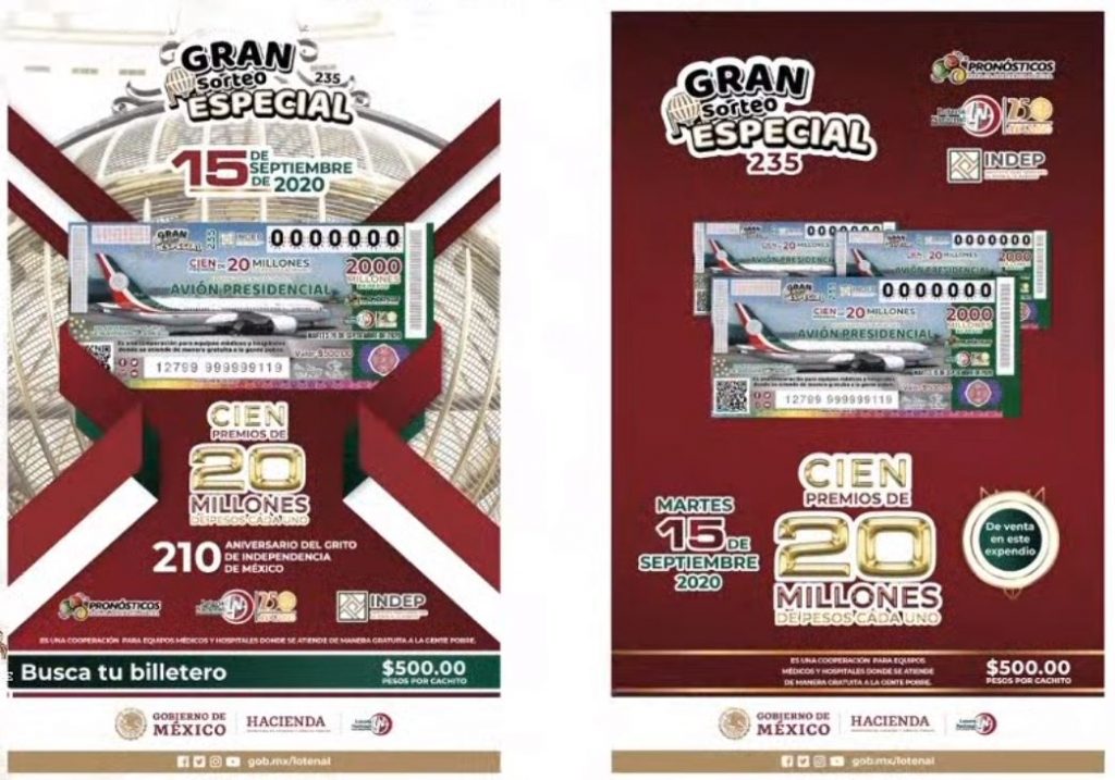 Prieto Ortega explicó que la rifa prevista para el 15 de septiembre y donde se obtendrá un premio, equivalente al costo del avión presidencial que es de dos millones de pesos, dicho sorteo se llamará el Gran Sorteo Especial número 235, y se distribuirán seis millones de cachitos.